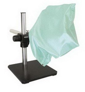 Washable polyester and carbon cover. Surface Resistivity: 1x10E5-1x10E6. Includes grounding snaps. Compatible with class 100 requirements. Guaranteed for 100 washes. 2-panel boom-arm microscope/magnifier cover (13" x 15")